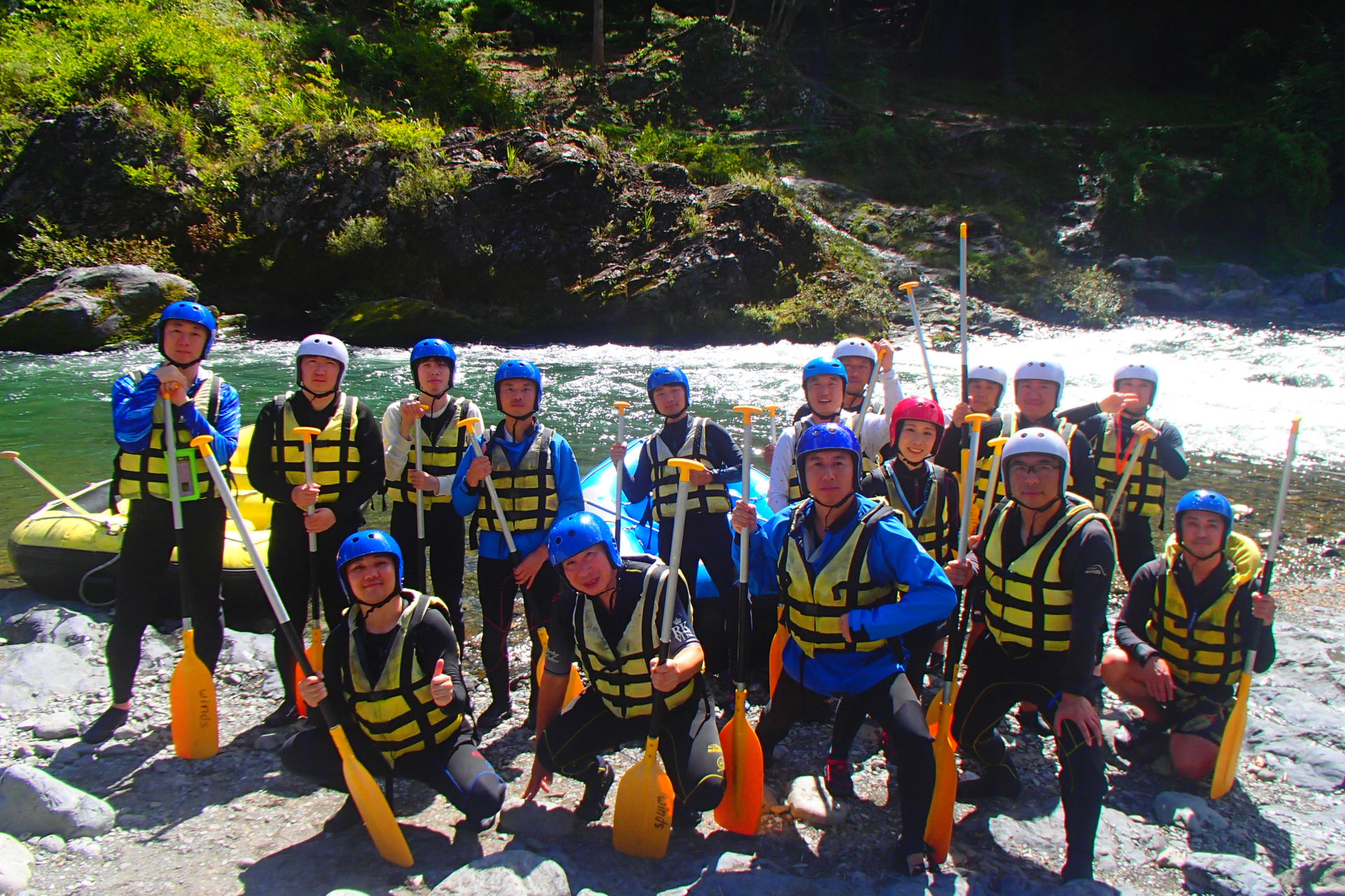 仲間と力を合わせて川を下り、笑い声の絶えないひとときを過ごしました。