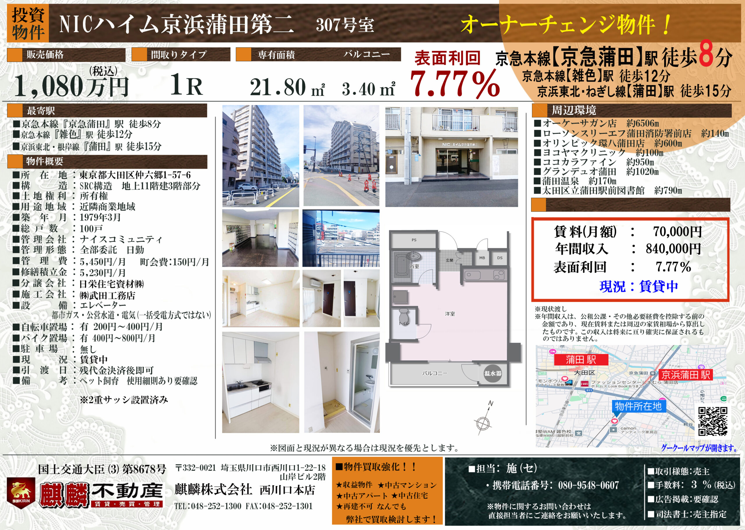 オーナーチェンジ物件 表面利回り7.77%