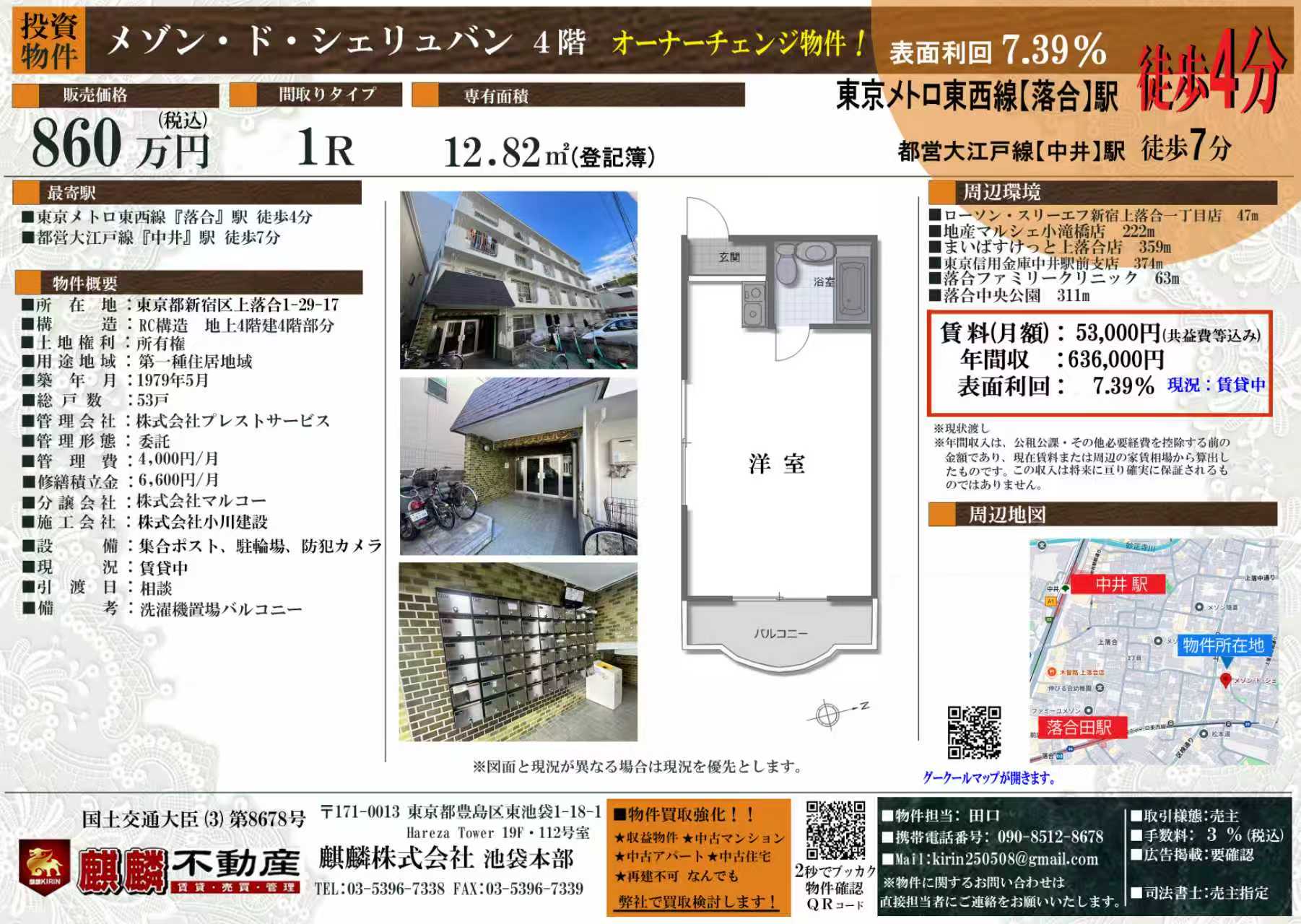 | 交通 | メトロ東西線「落合」駅 徒歩4分 都営大江戸線「中井」駅 徒歩7分 |